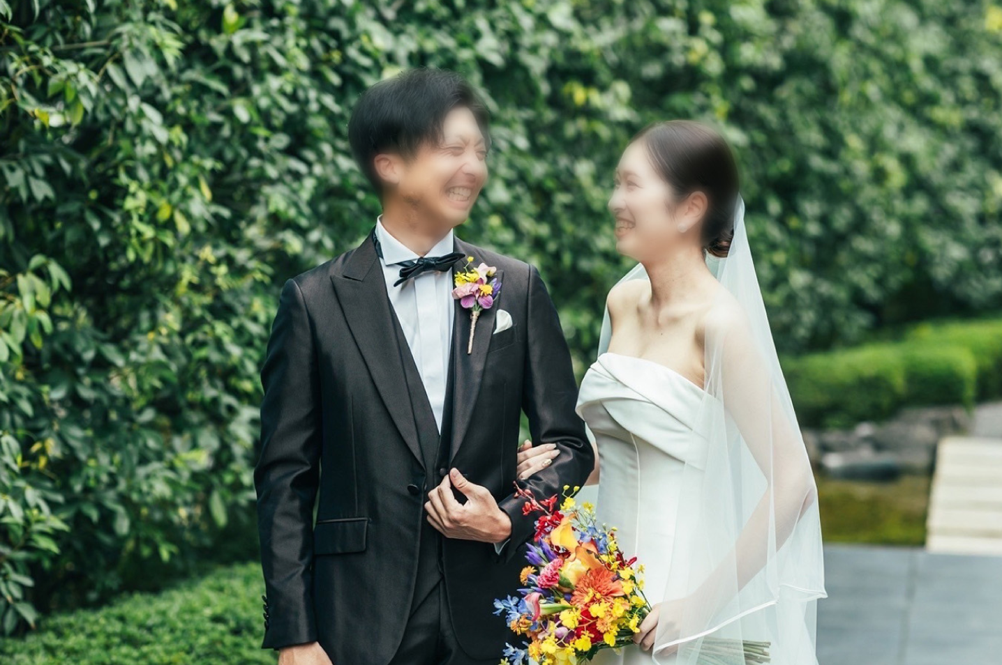 夫婦でトレーニングに通っていました!2人で一緒に行う運動もあったりと毎回の時間が楽しかったです!友達からもらった写真を見たときに、ドレス試着の時に気になっていたデコルテ部分も当日はスッキリしてるぅ〜と効果を感じました!旦那さんもビシッとタキシードを着こなしていたので満足です。